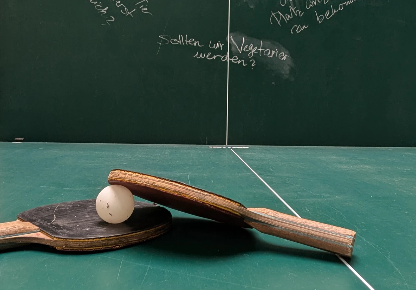 Es folgt ein rasanter Schlagabtausch aus tiefgreifenden Fragen, humorvollen Bemerkungen und nüchternen Geständnissen zwischen Ilya Kabakov und dem Philosophen Boris Groys. Ihr Frage-Antwort-(Tennis)-Spiel auf den Schiefertafeln, die das Tennisfeld säumen, entwickelt einen fesselnden Sog. Wer das Tennisfeld betritt, wird selbst Teil des Spiels – pariert Fragen und gerät in den Bann des Gedankenspiels.
