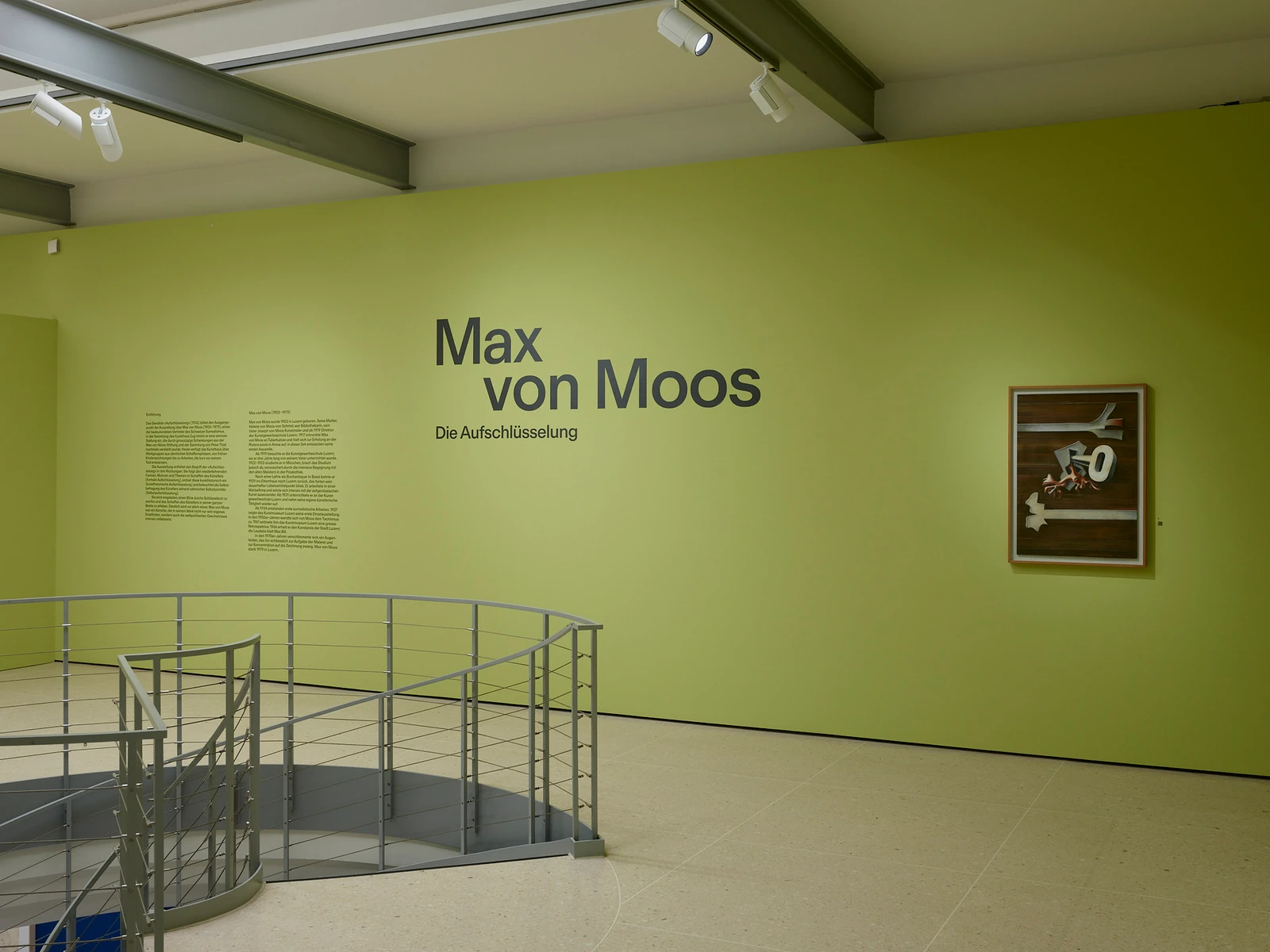 Dieses geheimnisvolle Werk bildet den Ausgangspunkt der gleichnamigen Ausstellung über Max von Moos (1903–1979), einen der bedeutendsten Vertreter des Schweizer Surrealismus. In der Sammlung des Kunsthaus Zug nimmt er eine zentrale Stellung ein, die durch grosszügige Schenkungen aus der Max von Moos-Stiftung und der Sammlung von Peter Thali nochmals verstärkt wurde. Heute verfügt das Kunsthaus über Werkgruppen aus sämtlichen Schaffensphasen, von frühen Kinderzeichnungen bis zu Arbeiten, die kurz vor seinem Tod entstanden.